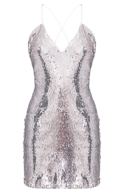 Pretty Little Thing silver sequin dress, $44; prettylittlething.com